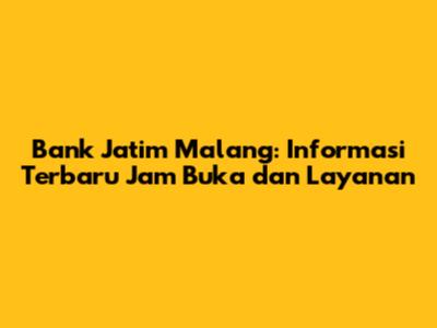 Jam Buka Bank Jatim Malang: Update Terbaru