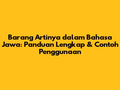 Barang artinya dalam bahasa Jawa adalah topik yang menarik dan sering dicari oleh banyak orang, terutama bagi mereka yang ingin memperdalam pengetahuan tentang bahasa dan budaya Jawa. Nah, guys, artikel ini akan membahas secara mendalam mengenai arti kata "barang" dalam bahasa Jawa, bagaimana penggunaannya dalam berbagai konteks, serta contoh-contoh kalimat yang bisa membantu kalian memahami lebih baik.