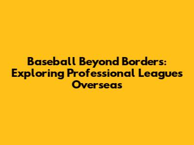 Navigating the World: A Guide to the Top Professional Baseball Leagues Overseas