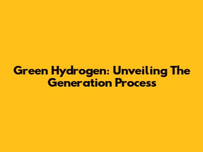 Green Hydrogen: Unveiling The Generation Process