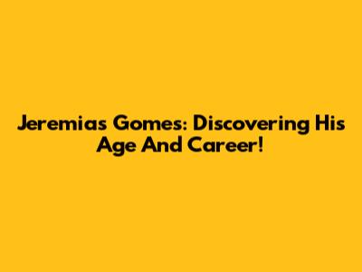 Jeremias Gomes: Discovering His Age And Career!