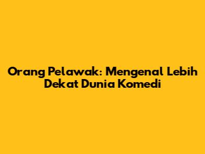 Orang Pelawak: Mengenal Lebih Dekat Dunia Komedi