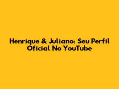 Henrique & Juliano: Seu Perfil Oficial No YouTube
