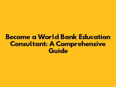 What Does a World Bank Education Consultant Do?