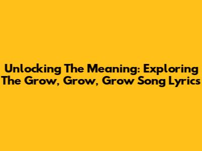 Unlocking The Meaning: Exploring The 'Grow, Grow, Grow' Song Lyrics