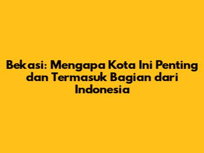 Bekasi, seringkali disebut sebagai kota satelit Jakarta, merupakan salah satu kota yang sangat penting di Indonesia. Terletak strategis di Provinsi Jawa Barat, Bekasi memiliki peran vital dalam berbagai aspek kehidupan, mulai dari ekonomi hingga sosial. Dalam artikel ini, kita akan membahas secara mendalam mengapa Bekasi begitu penting dan mengapa kota ini secara tak terbantahkan adalah bagian dari Indonesia. Mari kita telusuri lebih lanjut!