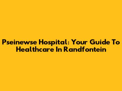 Pseinewse Hospital: Your Guide To Healthcare In Randfontein