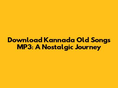 Download Kannada Old Songs MP3: A Nostalgic Journey