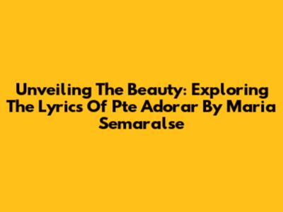 Unveiling The Beauty: Exploring The Lyrics Of 'Pte Adorar' By Maria Semaralse