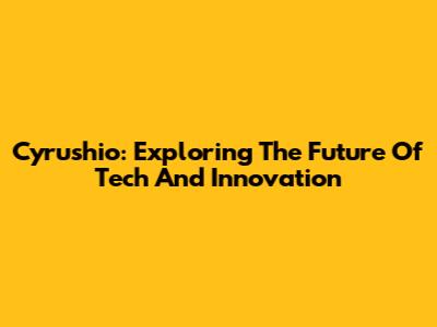 Cyrushio: Exploring The Future Of Tech And Innovation