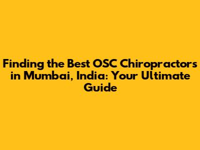 Hey guys! If you're on the hunt for the best OSC (Osteopathic Spinal Care) chiropractors in Mumbai, India, you've come to the right place. Let's dive into everything you need to know to find the right chiropractor for your needs. Whether you're dealing with back pain, neck stiffness, or just want to improve your overall well-being, finding a qualified chiropractor is super important. So, let's get started!