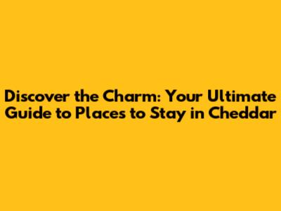 Alright, let's get down to business – where are you gonna crash? When it comes to places to stay in Cheddar, you've got a pretty sweet range of options. Let's break it down, shall we?