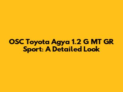 OSC Toyota Agya 1.2 G MT GR Sport: A Detailed Look