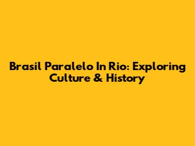 Brasil Paralelo In Rio: Exploring Culture & History