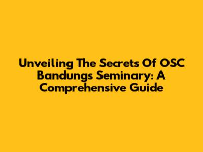 Unveiling The Secrets Of OSC Bandung's Seminary: A Comprehensive Guide