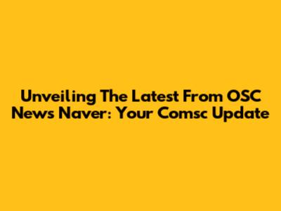 Unveiling The Latest From OSC News Naver: Your Comsc Update