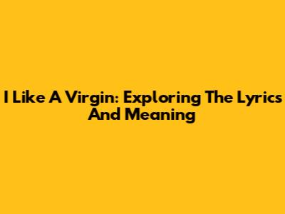 I Like A Virgin: Exploring The Lyrics And Meaning