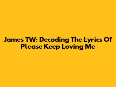 James TW: Decoding The Lyrics Of 'Please Keep Loving Me'