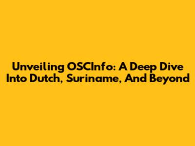 Unveiling OSCInfo: A Deep Dive Into Dutch, Suriname, And Beyond