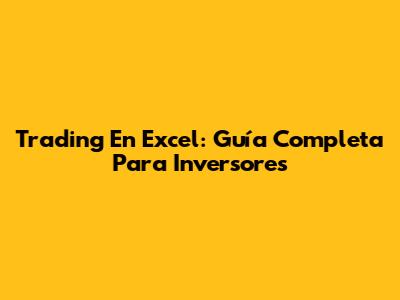 Trading En Excel: Guía Completa Para Inversores