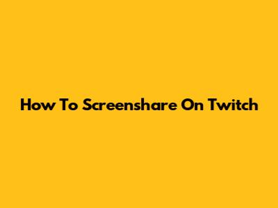 How To Screenshare On Twitch