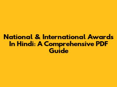 National & International Awards In Hindi: A Comprehensive PDF Guide