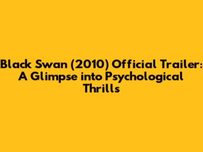 Hey guys, let's dive into the official trailer for Black Swan from 2010. This trailer is a masterclass in building suspense and hinting at the psychological turmoil that lies at the heart of Darren Aronofsky's chilling film. From the very first seconds, you're pulled into the intense world of Nina Sayers, a ballerina consumed by her ambition to achieve the perfect performance. The trailer masterfully uses quick cuts, dramatic music, and unsettling imagery to convey the immense pressure and psychological toll that professional ballet can exact. We see Nina's dedication, her obsessive nature, and the blurring lines between her reality and her increasingly fractured psyche. The visual style is striking, with a distinct contrast between the pristine, almost sterile world of the ballet studio and the darker, more disturbing transformations that Nina begins to undergo. This trailer doesn't give away too much plot, but it does an incredible job of establishing the mood and tone – one of intense psychological drama, obsession, and a descent into madness. You can feel the unspoken anxieties and the claustrophobic atmosphere that Nina is trapped in. It’s a preview that stays with you, making you question what’s real and what’s a figment of her deteriorating mental state. The focus is clearly on Nina's internal struggle, amplified by the external pressures of her demanding role and the arrival of a new, free-spirited dancer, Lily. The trailer hints at a dangerous rivalry and a codependent relationship that fuels Nina's paranoia and self-doubt. It's a truly captivating preview that promises a film that is as visually stunning as it is psychologically disturbing, leaving audiences eager to witness Nina's full transformation. The use of sound design in the trailer is also noteworthy, with sharp, percussive sounds and a haunting score that underscores the escalating tension. Every element is carefully crafted to immerse the viewer in Nina's fragile mental landscape. The fleeting glimpses of blood, the contorted reflections, and the intense stares all contribute to the feeling that we are witnessing something deeply unsettling and profoundly personal. It sets the stage for a film that explores themes of perfectionism, repression, and the dark side of artistic ambition.