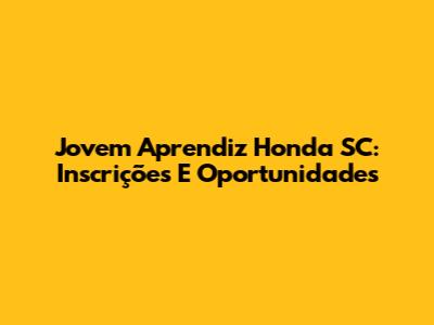 Jovem Aprendiz Honda SC: Inscrições E Oportunidades