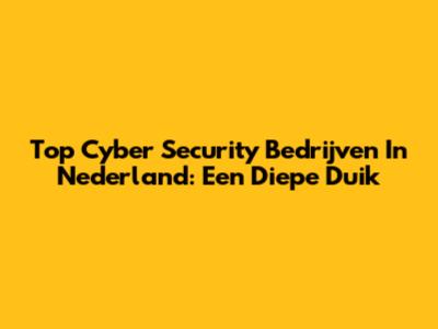 Top Cyber Security Bedrijven In Nederland: Een Diepe Duik
