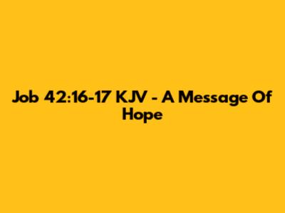 Job 42:16-17 KJV - A Message Of Hope