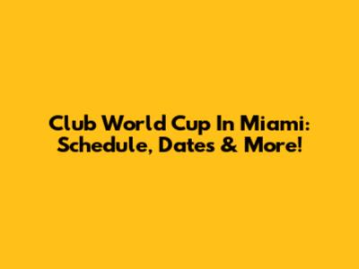 Club World Cup In Miami: Schedule, Dates & More!