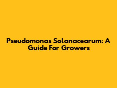 Pseudomonas Solanacearum: A Guide For Growers