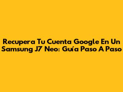 Recupera Tu Cuenta Google En Un Samsung J7 Neo: Guía Paso A Paso