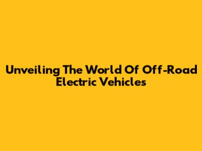 Unveiling The World Of Off-Road Electric Vehicles