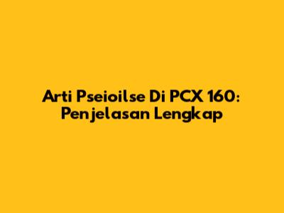 Arti 'Pseioilse' Di PCX 160: Penjelasan Lengkap
