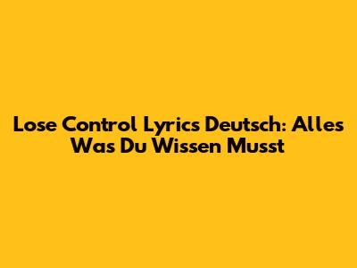 Lose Control Lyrics Deutsch: Alles Was Du Wissen Musst