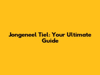 Jongeneel Tiel: Your Ultimate Guide