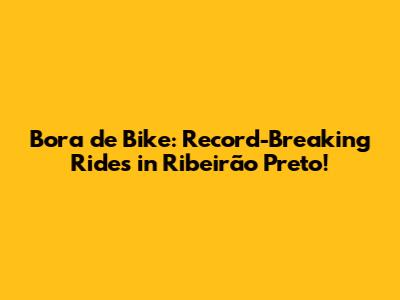 Hey guys! Ever felt the wind in your hair, the sun on your face, and the pure exhilaration of pushing your limits on two wheels? If you're a cycling enthusiast or just someone who appreciates a good dose of adrenaline, then buckle up! We're diving headfirst into the world of Bora de Bike and its amazing record-breaking rides in the vibrant city of Ribeirão Preto, Brazil. This isn't just about cycling; it's about passion, community, and the thrill of the chase. Let's explore what makes this cycling scene so special and how riders are making their mark, one pedal stroke at a time.