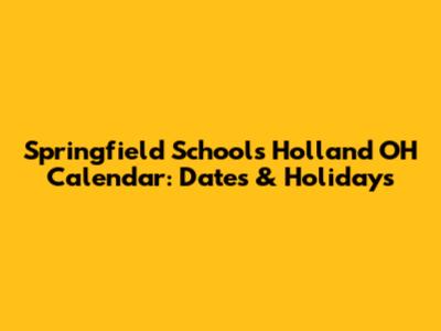 Springfield Schools Holland OH Calendar: Dates & Holidays