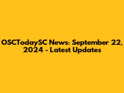 OSCTodaySC News: September 22, 2024 - Latest Updates