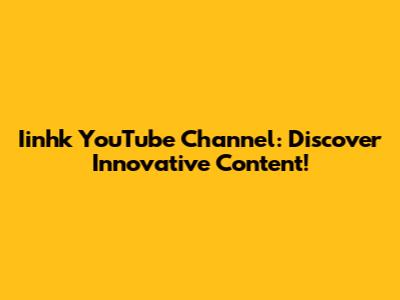 Iinhk YouTube Channel: Discover Innovative Content!