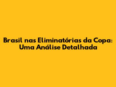 O Cenário Atual das Eliminatórias