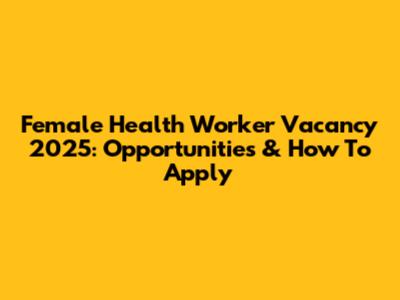 Female Health Worker Vacancy 2025: Opportunities & How To Apply