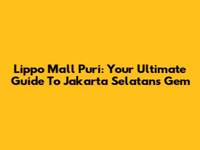 Lippo Mall Puri: Your Ultimate Guide To Jakarta Selatan's Gem