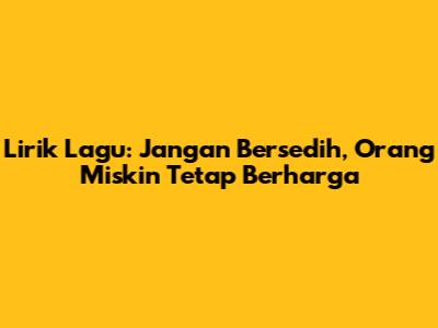 Lirik Lagu: Jangan Bersedih, Orang Miskin Tetap Berharga