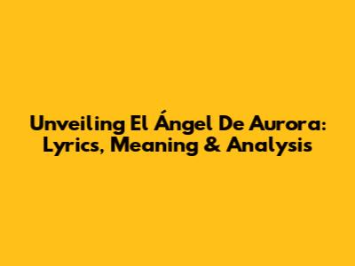 Unveiling 'El Ángel De Aurora': Lyrics, Meaning & Analysis