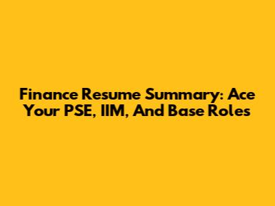 Finance Resume Summary: Ace Your PSE, IIM, And Base Roles