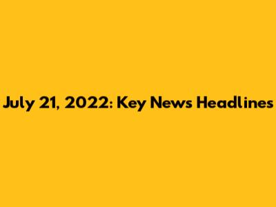 July 21, 2022: Key News Headlines