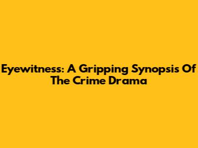 Eyewitness: A Gripping Synopsis Of The Crime Drama