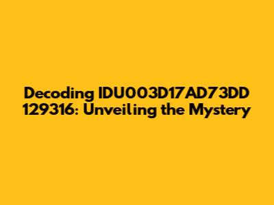 Hey everyone! Let's dive into something a little cryptic today: the fascinating world behind the code IDU003D17AD73DD 129316. We're going to explore what this might be all about. Think of it like being digital detectives. This kind of code often appears in the digital landscape, and understanding it is key. It's like a secret handshake in the online world, pointing us to specific information or actions. Let's break it down together, shall we?